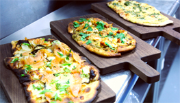 Award-Winning Executive Chef, Debbie Gold, puts a new spin on this ancient bread by adding yeast & honey for a product with more depth of flavor and a delicate texture. Chef prepares three "signature flatbreads" inspired by flavors from Italy to the Southwest...a House-Cured Salmon, Charred Spring Onion and Mozzarella; an Artichoke, Fontina, and Chimichurri; and a Spicy Chipotle Chicken, Toasted Tomatillo Sauce & White Cheddar Cheese "In the Kitchen" at The Red Door Grill.