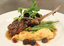 This week, Executive Chef Dwight Hawkins uses 2 cuts of lamb for his signature dish. First, a lamb chop. Lamb chops are cuts of lamb which are made by cutting at an angle perpendicular to the spine. The best chops come from the loin, rib, and sirloin. The second, is a lamb shank. A meat shank or shin is the portion of meat around the tibia of the animal, the leg bone beneath the knee. Chef uses both grilling and braising techniques, then finishes the signature dish with a root vegetable mash, buttered green beans, topped with a dried cherry demi-glace…”In the Kitchen…at Rozzelle Court. |