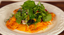 Executive Chef, Dan Swinney, celebrates the foods from Lidia's Italian village with a Montasio Cheese Crisp filled with Potatoes, Leeks and Maine Lobster. He tops this signature dish with Mixed Greens and House-Made Pickled Vegetables, "In the Kitchen with Bonnie" at Lidia's - Kansas City.